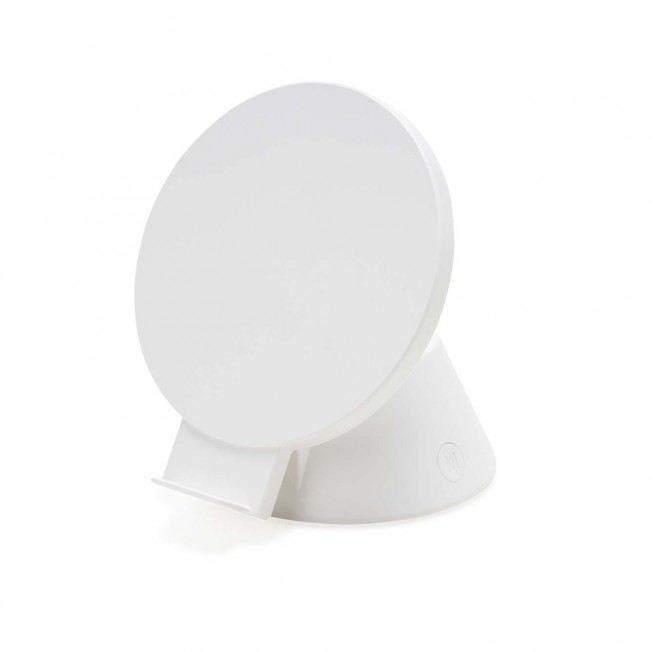 Descrição: Caixinha de Som bluetooth com carregador por indução. Produzido em material plástico, a caixinha possui antiderrapantes emborrachados na parte inferior, ao ser inclinado o produto também pode ser utilizado como suporte para o celular. Para desfrutar do carregamento por indução (sem fio) é fundamental que o celular possua a tecnologia QI – desta maneira é possível carregar o celular posicionando-o sob carregador, sendo necessário apenas conectar o carregador à uma fonte de energia (USB ou diretamente na tomada). Acompanha cabo USB Tipo-C.