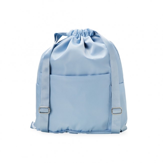 Mochila saco em poliéster de impacto impermeável com três compartimentos, sendo o principal com bolso interno exclusivo para itens molhados. A mochila possui um compartimento antifurto, bolsos laterais e alças reguláveis.