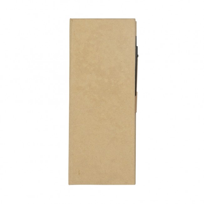 Descrição: Bloco de anotações ecológico com caneta e autoadesivos. Bloco retangular de papelão com frente e verso liso, contra capa possui um “bolso” com régua plástica fosca de 12 cm. Possui cinco blocos coloridos autoadesivos com aproximadamente 130 folhas e dois blocos rascunho rosa e amarelo com aproximadamente 130 folhas. Suporte de papel com caneta de papelão de clip e ponteira plástica. OBS.: PEDIDOS APENAS MÚLTIPLO DE 50 PEÇAS!