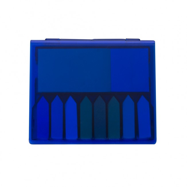 Descrição: Bloco de anotações plástico inteiro colorido com autoadesivos. Possui 8 mini blocos autoadesivos com aproximadamente 100 folhas, um bloco médio com 100 folhas e bloco maior também com 100 folhas.