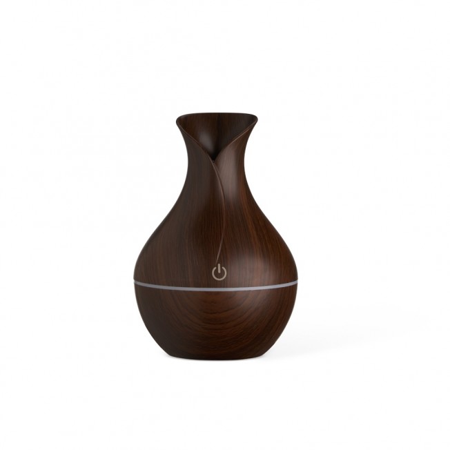 Descrição: Umidificador com led de 7 cores com exibição alternada. Produzido em plástico estilizado em madeira com acabamento brilhante. Umidificador possui capacidade de até 150ml e funciona apenas a base de água. Acompanha filtro de algodão e um cabo USB. Obs.: A limpeza externa deve ser feita apenas com pano umedecido, caso submergir o produto o equipamento pode ser danificado.